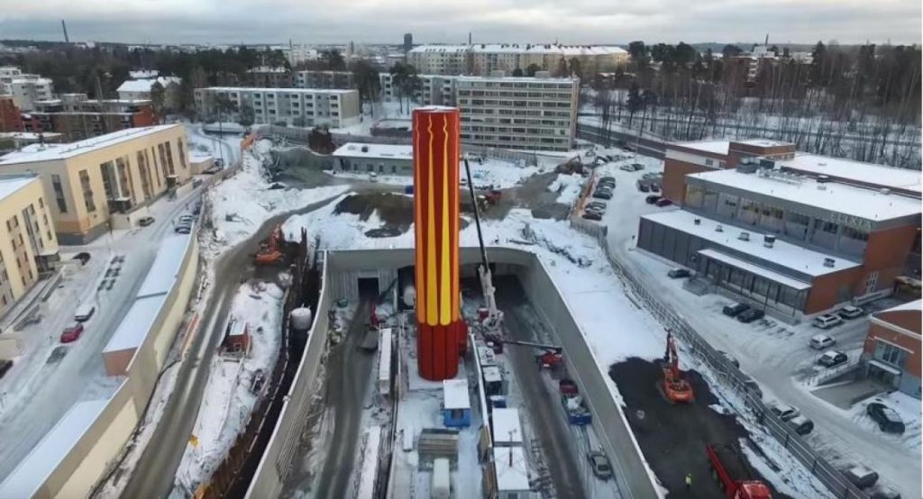 After persistent planning work and route surveying, Silvasti found a solution to make such road transport possible, despite several overhead power lines, bridges and other street obstacles. By finding a solution to transport chimneys in one piece provided significant advantages for the client by making chimney erection phase as cost-effective as possible. Transport in one piece was the only cost-effective way to get proper paint job done and also made final installation at tunnel site a lot faster.